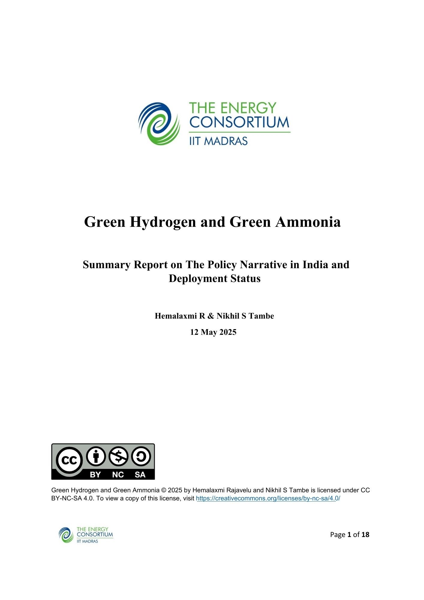 White Papers Annual Report with Patent & Publications 2024 Accelerating Net Zero - February 2025 Accelerating Net Zero - June 2024 Path to Decarbonization - December 2023 INNOWIND Report - January 2025 GREEN PORTS IN INDIA - June 2025 Marine Spatial Planning: Part A Marine Spatial Planning: Part B Green Hydrogen workshop report Sep 2025 Compendium on ESG Nov 2025 Working Papers Comparative Analysis of Central and State-Level Solar Energy Policies and Implementations: A Case Study of Tamil Nadu and Gujarat Interrogation of ESG Rating and Benchmarking processes Mapping Solar Rooftop Potential in Chennai using GIS Green Hydrogen and Green Ammonia Articles in magazines